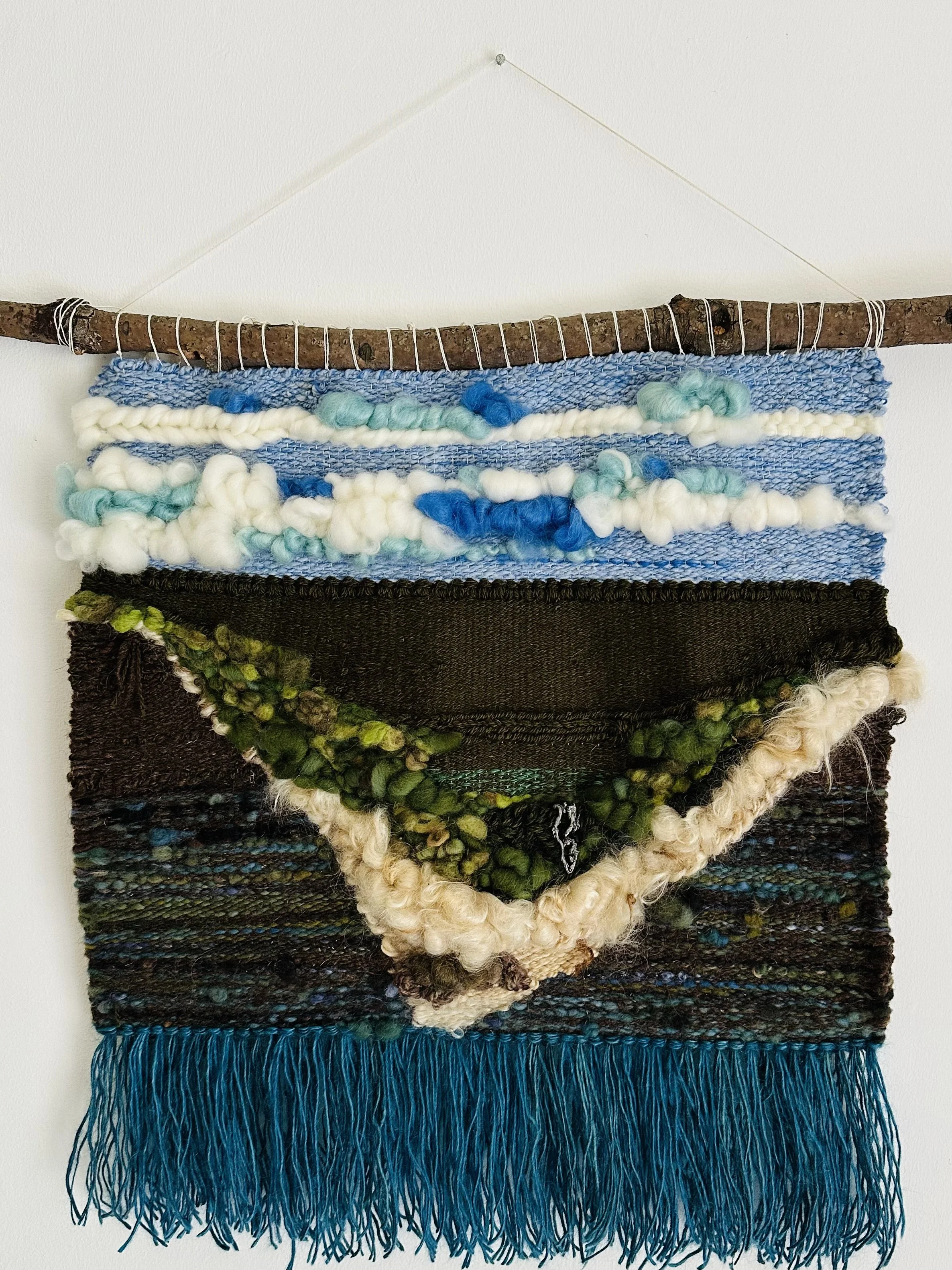 When I made this piece, I found myself returning to that feeling. I worked from photographs, letting the colours and textures of the water, the shoreline, and the forest guide the weave.