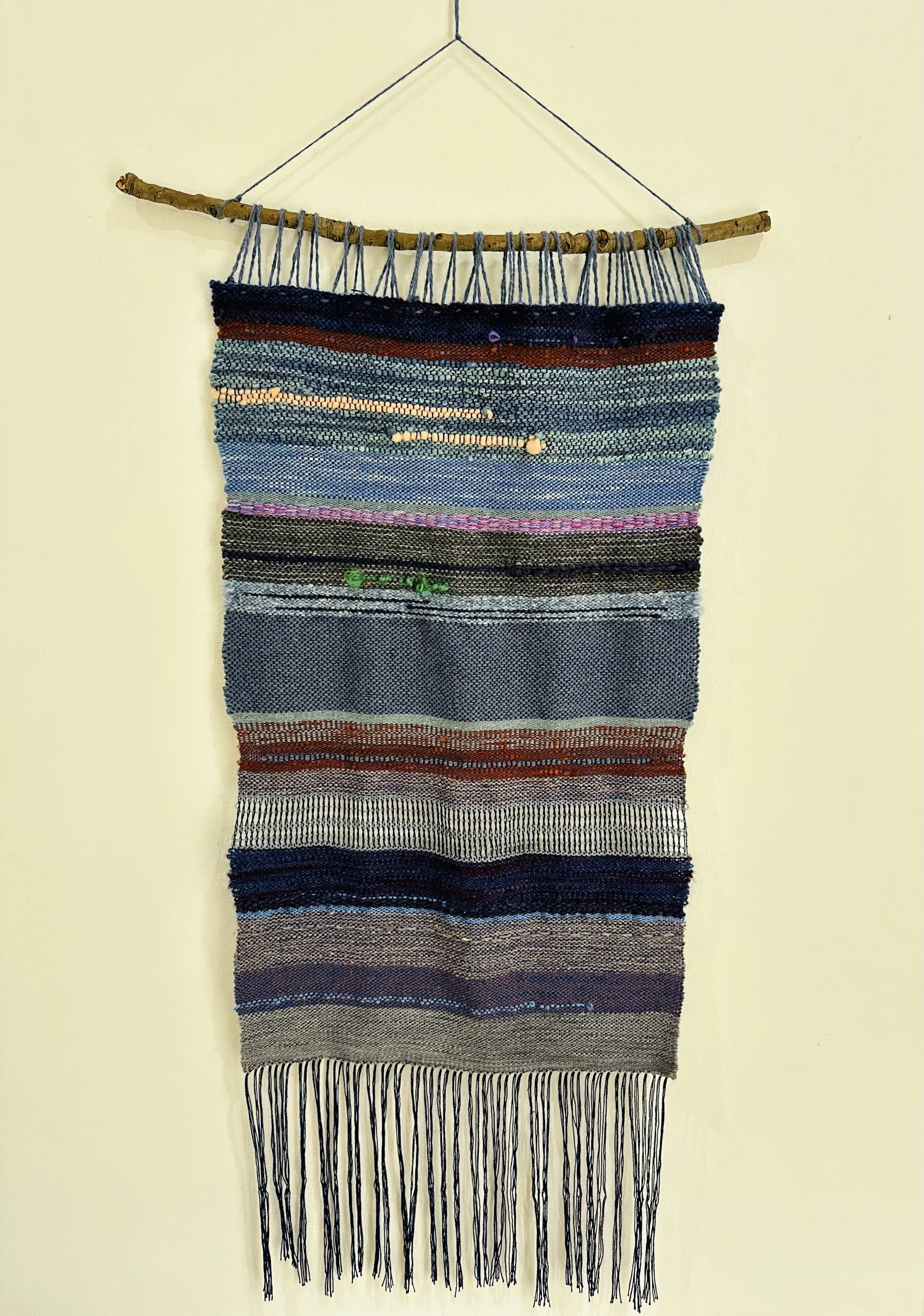 Unlike many of my other works, this one did not begin with a clear story. It simply unfolded as I worked, guided by the fibres and the rhythm of weaving. Layer by layer, the blues found their place, creating a piece that feels calm, reflective, and quietly unexpected.